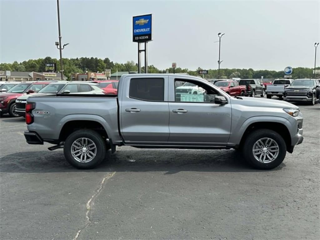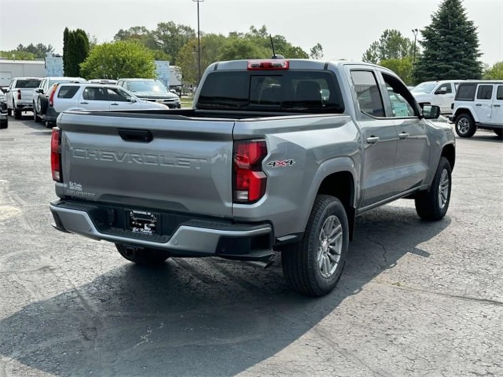 Sterling Gray Metallic 2025 Chevrolet Colorado LT 4WD 8-Speed Automatic 2.7L I4 Turbocharged DOHC 16V LEV3-ULEV50 310hp 4WD, 120-Volt Bed-Mounted Power Outlet, 120-Volt Power Outlet, 4-Way Manual Passenger Seat Adjuster, 4-Wheel Disc Brakes, 6 Speakers, 6-Speaker Audio System Feature, 8-Way Power Driver Seat Adjuster, ABS brakes, Adaptive Cruise Control, Advanced Trailering Package, Air Conditioning, Alloy wheels, AM/FM radio: SiriusXM, Apple CarPlay/Android Auto, Auto High-beam Headlights, Auto-dimming Rear-View mirror, Automatic Emergency Braking, Automatic Locking Rear Differential, Automatic temperature control, Black Spray-On Bedliner, Blind Zone Steering Assist w/Trailering, Brake assist, Bumpers: body-color, Chevy Safety Assist, Cloth Seat Trim, Compass, Delay-off headlights, Driver door bin, Driver Seatback Map Pocket, Driver vanity mirror, Dual front impact airbags, Dual front side impact airbags, Dual Rear USB Ports (Charge Only), Electronic Stability Control, Emergency communication system: OnStar, Evotex Seat Trim, Following Distance Indicator, Forward Collision Alert, Front anti-roll bar, Front Bucket Seats, Front Center Armrest, Front dual zone A/C, Front LED Fog Lamps, Front Passenger Seatback Map Pocket, Front Pedestrian & Bicyclist Braking, Front reading lights, Front wheel independent suspension, HD Surround Vision, Heated door mirrors, Heated Driver & Front Passenger Seats, Heated front seats, Heated Steering Wheel, Heavy-Duty Trailering Package, Illuminated entry, Integrated Trailer Brake Controller, IntelliBeam Automatic High Beam On/Off, Lane Keep Assist w/Lane Departure Warning, LED Daytime Running Lamps, LED Headlamps, LED Stop Tail Lamp, Low tire pressure warning, LT Convenience Package, LT Package, Navigation System, Occupant sensing airbag, Outside temperature display, Overhead airbag, Overhead console, Panic alarm, Passenger door bin, Passenger vanity mirror, Power door mirrors, Power Driver Lumbar Control Seat Adjuster, Power driver seat, Power steering, Power windows, Preferred Equipment Group 4WT, Radio data system, Radio: 11.3 Diagonal Advanced Color LCD Display, Rear Center Armrest, Rear Pedestrian Alert, Rear reading lights, Rear step bumper, Rear window defroster, Remote keyless entry, Security system, SiriusXM Trial Subscription, Speed control, Speed-sensing steering, Split folding rear seat, Steering Wheel Mounted Audio Controls, Steering wheel mounted audio controls, Tachometer, Technology Package, Telescoping steering wheel, Tilt steering wheel, Traction control, Trailering App, Trip computer, Variably intermittent wipers, Wireless Phone Charging, Wireless Phone Projection.