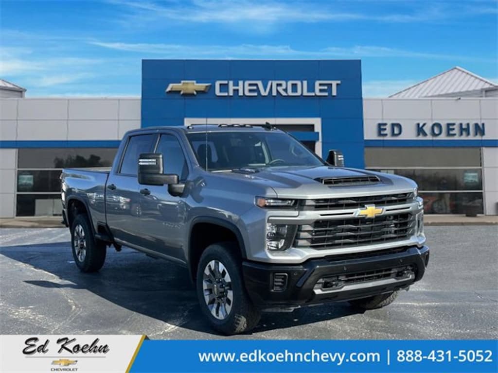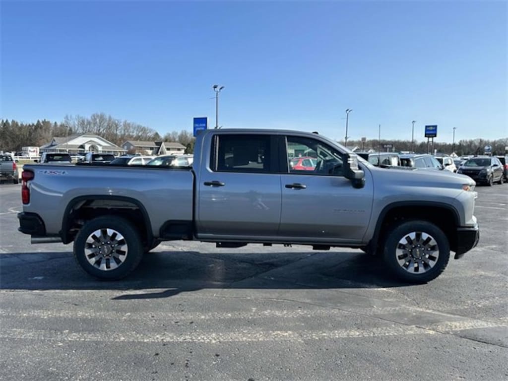 Sterling Gray Metallic 2025 Chevrolet Silverado 2500HD Custom 4WD 10-Speed Automatic Duramax 6.6L V8 Turbodiesel Silverado 2500HD Custom, 4D Crew Cab, Duramax 6.6L V8 Turbodiesel, 10-Speed Automatic, 4WD, Sterling Gray Metallic, Black Cloth, 10-Way Power Driver Seat Adjuster w/Lumbar, 120-Volt Bed Mounted Power Outlet, 120-Volt Interior Power Outlet, 170 Amp Alternator, 2-Speed Electronic Shift Transfer Case, 220 Amp Alternator, 3.5 Diagonal Monochromatic Display DIC, 4-Wheel Disc Brakes, 6 Speakers, 6-Speaker Audio System, 720 Cold-Cranking Amps Heavy-Duty Battery, ABS brakes, Air Conditioning, Alloy wheels, AM/FM radio: SiriusXM with 360L, Apple CarPlay/Android Auto, Auto High-beam Headlights, Auto-Dimming Inside Rear-View Mirror, Black Mirror Caps, Bluetooth® For Phone, Brake assist, Chevrolet Connected Access Capable, Cloth Seat Trim, Color-Keyed Carpeting Floor Covering, Compass, Custom Convenience Package, Custom Value Package, CX Safety Package, Deep-Tinted Glass, Delay-off headlights, Driver door bin, Dual front impact airbags, Dual front side impact airbags, Dual Rear USB Ports (Charge Only), Durabed Pickup Bed, Electric Rear-Window Defogger, Electronic Cruise Control w/Set & Resume Speed, Electronic Stability Control, Emergency communication system: OnStar, Engine Block Heater, Exhaust Brake, EZ Lift Power Lock & Release Tailgate, Front 40/20/40 Split-Bench Seats w/Lockable Storage, Front anti-roll bar, Front Center Armrest w/Storage, Front reading lights, Front Rubberized Vinyl Floor Mats, Front wheel independent suspension, Fully automatic headlights, HD Rear Vision Camera, Heated & Auto-Dimming Vertical Trailering Mirrors, Heated door mirrors, Heated Vertical Trailering Mirrors, Illuminated entry, Lane Change Alert w/Side Blind Zone Alert, LED Cargo Area Lighting, LED Smoked Amber Roof Marker Lamps, Locking Tailgate, Low tire pressure warning, Manual Tailgate Function w/No EZ Lift, Manual Tilt-Wheel Steering Column, Occupant sensing airbag, OnStar Services Capable, Outside temperature display, Overhead airbag, Overhead console, Panic alarm, Passenger door bin, Passenger vanity mirror, Power Door Locks, Power door mirrors, Power Front Windows w/Driver Express Up/Down, Power Front Windows w/Passenger Express Down, Power Rear Windows w/Express Down, Power steering, Power windows, Preferred Equipment Group 1CX, Premium audio system: Chevrolet Infotainment 3, Push Button Start, Radio: Chevrolet Infotainment 3 System, Rear 60/40 Folding Bench Seat (Folds Up), Rear Cross Traffic Alert, Rear reading lights, Rear Rubberized Vinyl Floor Mats, Rear step bumper, Remote Keyless Entry, Remote keyless entry, Remote Vehicle Starter System, SiriusXM w/360L Trial Subscription, Speed control, Standard Tailgate, Suspension Package, Tachometer, Tilt steering wheel, Traction control, Trip computer, Turn signal indicator mirrors, Ultrasonic Front & Rear Park Assist, Unauthorized Entry Theft-Deterrent System, Variably intermittent wipers, Wheels: 20 10-Spoke Machined Aluminum, Wi-Fi Hotspot Capable, Winter Grille Cover, Wireless Phone Projection.