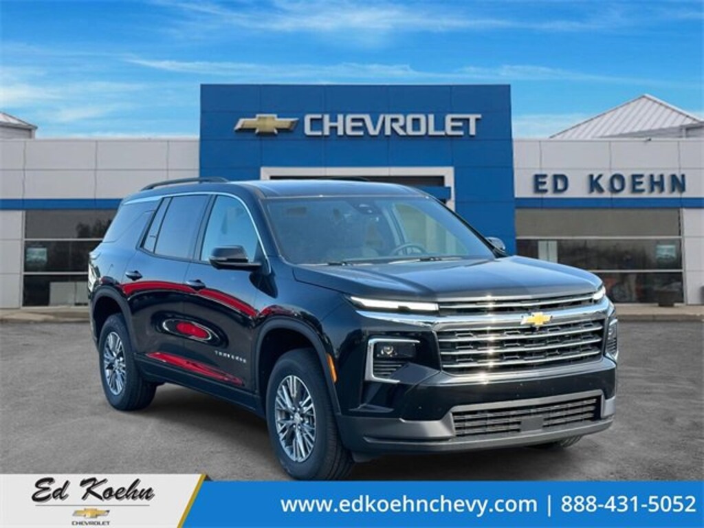Mosaic Black Metallic 2025 Chevrolet Traverse LT 2LT AWD 8-Speed Automatic 2.5L DOHC Traverse LT 2LT, 4D Sport Utility, 2.5L DOHC, 8-Speed Automatic, AWD, Mosaic Black Metallic, Lt Jet Black Cloth, 1st & 2nd Row All-Weather Floor Liners (LPO), 3rd Row All-Weather Floor Liner (LPO), 3rd row seats: split-bench, 4-Way Manual Front Passenger Seat Adjuster, 4-Wheel Disc Brakes, 6 Speakers, 6-Speaker Audio System Feature, 8-Way Power Driver Seat Adjuster, ABS brakes, Air Conditioning, AM/FM radio: SiriusXM with 360L, Apple CarPlay/Android Auto, Auto High-beam Headlights, Automatic temperature control, Brake assist, Bumpers: body-color, Child-Seat-Sensing Airbag, Compass, Delay-off headlights, Driver Confidence Package, Driver door bin, Driver vanity mirror, Dual front impact airbags, Dual front side impact airbags, Electronic Stability Control, Floor Liner Package (LPO), Four wheel independent suspension, Front anti-roll bar, Front Bucket Seats, Front Center Armrest, Front dual zone A/C, Front reading lights, Fully automatic headlights, HD Surround Vision, Heated door mirrors, Heated front seats, Heated steering wheel, Illuminated entry, Low tire pressure warning, Navigation System, Occupant sensing airbag, Outside temperature display, Overhead airbag, Overhead console, Panic alarm, Passenger door bin, Passenger vanity mirror, Power door mirrors, Power driver seat, Power Liftgate, Power Outlet, Power steering, Power windows, Preferred Equipment Group 2LT, Premium Cloth Seat Trim, Radio data system, Radio: Audio System w/17.7 Diagonal Display, Rear air conditioning, Rear anti-roll bar, Rear Pedestrian Alert, Rear reading lights, Rear window defroster, Rear window wiper, Remote keyless entry, Security system, SiriusXM w/360L Trial Subscription, Speed control, Speed-sensing steering, Steering wheel mounted audio controls, Tachometer, Telescoping steering wheel, Tilt steering wheel, Traction control, Traffic Sign Recognition, Trip computer, Turn signal indicator mirrors, Variably intermittent wipers, Vertical Cargo Net (LPO), Voltmeter, Wheels: 18 Grazen Metallic Machined-Face Aluminum.