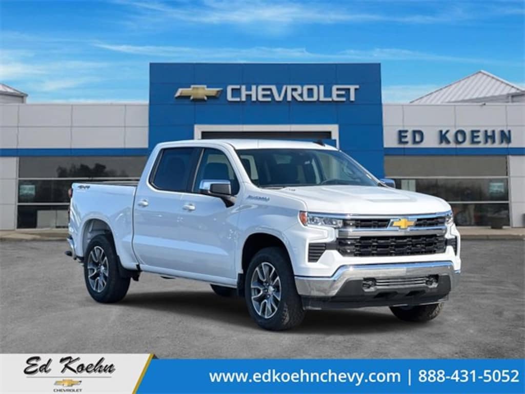 Summit White 2026 Chevrolet Silverado 1500 LT 4WD 8-Speed Automatic 2.7L I4 Turbocharged DOHC 16V LEV3-SULEV30 310hp 8-Speed Automatic, 4WD, Jet Black Cloth, 10-Way Power Driver Seat w/Lumbar, 12.3 Multicolor Reconfigurable Digital Display, 120-Volt Bed Mounted Power Outlet, 120-Volt Interior Power Outlet, 4-Wheel Disc Brakes, 40/20/40 Front Split-Bench Seat, 6 Speakers, 6-Speaker Audio System, ABS brakes, Air Conditioning, All-Star Edition, AM/FM radio: SiriusXM with 360L, Apple CarPlay/Android Auto, Auto High-beam Headlights, Auto-Locking Rear Differential, Automatic Emergency Braking, Automatic temperature control, Bluetooth® For Phone, Brake assist, Bumpers: chrome, Cloth Seat Trim, Color-Keyed Carpeting Floor Covering, Compass, Convenience Package, Delay-off headlights, Driver door bin, Driver vanity mirror, Dual front impact airbags, Dual front side impact airbags, Dual Rear USB Ports (Charge Only), Dual-Zone Automatic Climate Control, Electric Rear-Window Defogger, Electronic Cruise Control, Electronic Stability Control, Emergency communication system: OnStar, Following Distance Indicator, Forward Collision Alert, Front anti-roll bar, Front Center Armrest w/Storage, Front dual zone A/C, Front Frame-Mounted Black Recovery Hooks, Front Pedestrian Braking, Front reading lights, Front wheel independent suspension, Fully automatic headlights, HD Rear Vision Camera, Heated door mirrors, Heated Driver & Front Outboard Passenger Seats, Heated front seats, Heated Steering Wheel, Heated steering wheel, High Capacity Suspension Package, Hitch Guidance, Illuminated entry, Integrated Trailer Brake Controller, IntelliBeam Automatic High Beam On/Off, Keyless Open & Start, Lane Keep Assist w/Lane Departure Warning, LED Cargo Area Lighting, Low tire pressure warning, Manual Tilt/Telescoping Steering Column, Occupant sensing airbag, OnStar Services Capable, Outside temperature display, Overhead airbag, Overhead console, Panic alarm, Passenger door bin, Passenger vanity mirror, Power door mirrors, Power driver seat, Power Front Windows w/Driver Express Up/Down, Power Front Windows w/Passenger Express Down, Power Rear Windows w/Express Down, Power steering, Power windows, Premium audio system: Chevrolet Infotainment 3 Premium, Radio data system, Radio: Chevrolet Infotainment 3 Premium System, Rear 60/40 Folding Bench Seat (Folds Up), Rear reading lights, Rear step bumper, Rear window defroster, Remote keyless entry, Remote Vehicle Starter System, Security system, SiriusXM w/360L Trial Subscription, Speed control, Speed-sensing steering, Split folding rear seat, Standard Suspension Package, Steering Wheel Audio Controls, Steering wheel mounted audio controls, Tachometer, Teen Driver, Telescoping steering wheel, Theft Deterrent System (Unauthorized Entry), Tilt steering wheel, Tire Pressure Monitoring System, Traction control, Trailering Package, Trip computer, Voltmeter, Wheels: 20 x 9 Painted Aluminum, Wi-Fi Hot Spot Capable, Wrapped Steering Wheel.