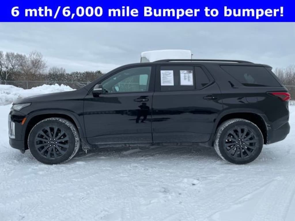 One Owner/No Accidents!Tow Pack/Leather!Check out this blacked out 2023 Chevrolet Traverse RS AWD with the 3.6L V6 engine and only 46,683 miles. This Ebony beauty will have heads turning with its stylish rims and midnight look. Options include tow package, birds eye view back up camera, side blind zone alert, forward collision alert, plus more... The leather heated power seats look amazing with no rips/tears or burns. Options include Bose premium audio, Projection mode, Apple CarPlay, touch screen display, heated steering wheel, plus more!!!!Just thought you should know...All pre-owned vehicles go through a comprehensive 126 multi point vehicle inspection. This beauty has been fully inspected and serviced which includes our FREE 90 day/3,000 mile limited warranty! The exterior is clean with no rust, heavy dings or scratches. The cloth interior looks great with no rips, tears or burns.Good Credit/Bad Credit/No Credit! We work with over a dozen local lenders to get you the best rates and terms. We also give Top dollar for trade ins even if you still owe on it. Contact us today to go over your options.PROUDLY SERVING WEST MICHIGAN AND SURROUNDING AREASKENTWOOD,WYOMING,GRAND RAPIDS, WALKER,MARNE,COOPERSVILLE, NUNICA,RAVENNA,CONKLIN,WRIGHT,COMSTOCK PARK,SPARTA,KENT CITY,CASNOVIA,BAILEY,GRANT,NEWAYGO,ROCKFORD, CEDAR SPRINGS,SAND LAKE,PIERSON,HOWARD CITY,TRUFANT,GOWEN, REED CITY, BIG RAPIDS, PARIS, GREENVILLE,BELDING,LOWELL,IONIA,SARANAC,